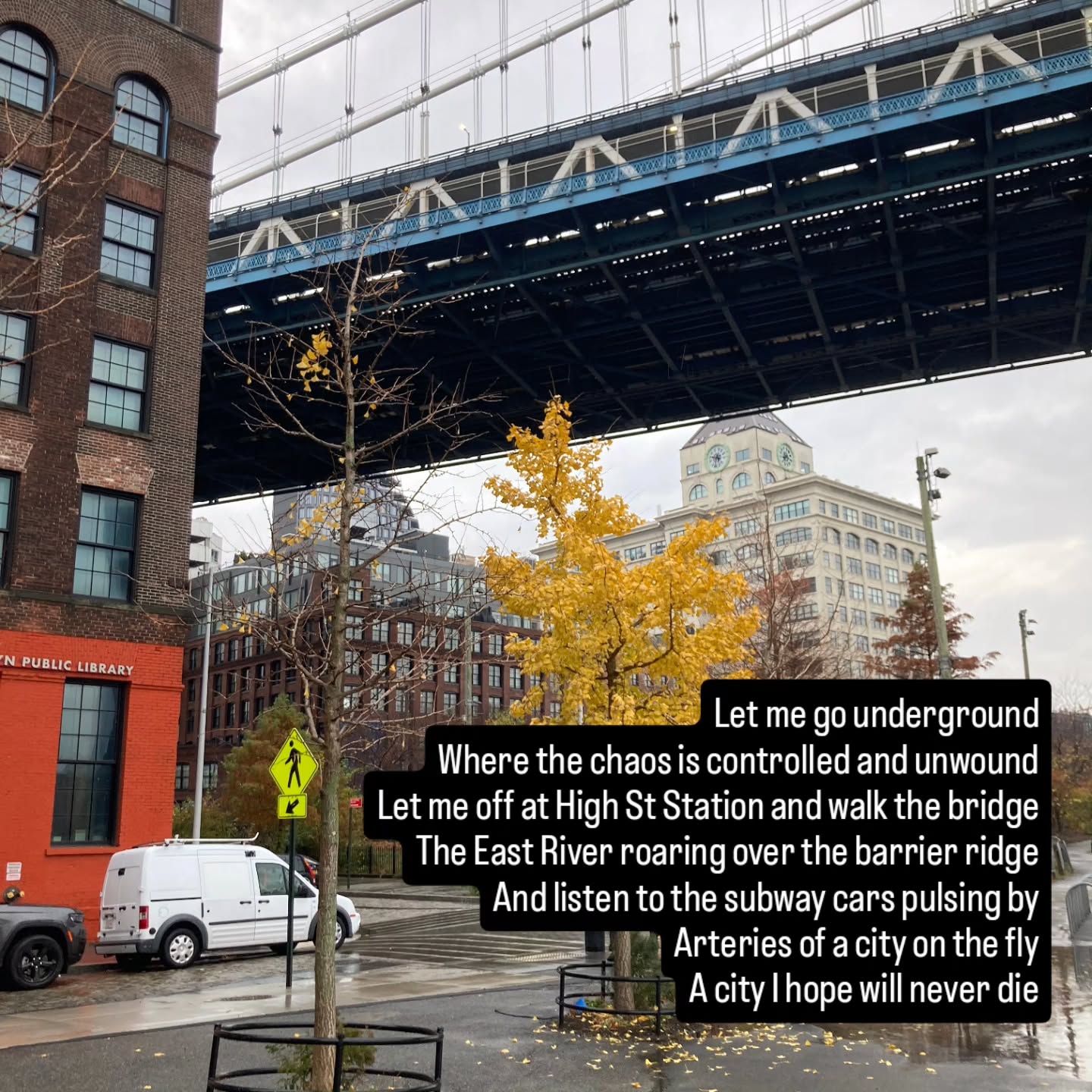 Photos taken in NYC in November last year. The first on the corner of 10th Ave and West 37th (I think???) in Manhattan, and the second in Dumbo, Brooklyn.